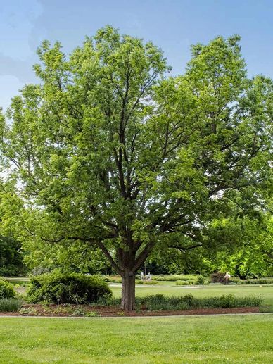 30-45 feet tall and spreading 25-35 feet wide, forming a dense, rounded canopy and providing yellow fall color. It typically grows 1-2 feet per yea